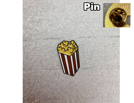 Afhankelijk van het product design worden deze met ijzeren of rubberen sluiting geleverd speld pin clipon clip on ((cinema film cosy movies theater show snack