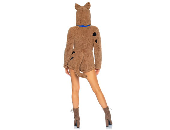 Mystery Pup-kostuum bestaat uit een ultrazachte bodysuit met ritssluiting, hoody met oren en een staart