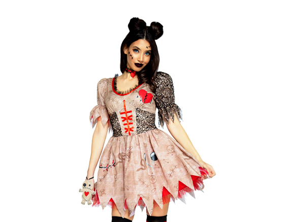 3 Delige Voodoo Pop, bestaande uit een geprinte jurk met net details, choker met hartje en een armband met een popje